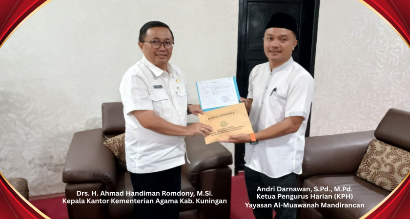 Sebagai wujud nyata solidaritas kemanusiaan, Yayasan Pembangunan Pendidikan Al-Muawanah Mandirancan menyerahkan donasi tanggap bencana Sumatera sebesar Rp. 9.845.000 kepada Kementerian Agama (Kemenag) Kabupaten Kuningan. Penyerahan bantuan ini berlangsung pada Selasa (16/12/2025) di Ruang Kepala Kantor Kemenag dan diterima langsung oleh H. Ahmad Handiman Romdony.